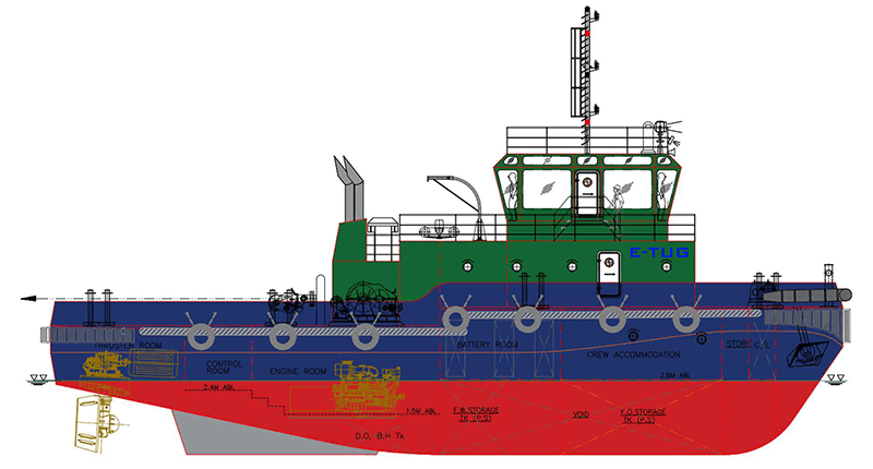 KABIRA - 40 Tonne BP Coastal Tug ready for Trials delivered by September 2024. Conventional, SRP and Battery Electric Propulsion Tugs 20T - 40T